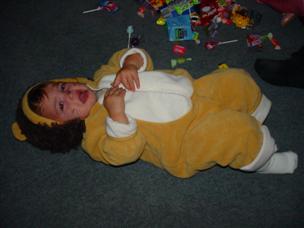 | It's my first real Halloween night! | Mommy dressed me as a lion. |