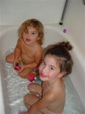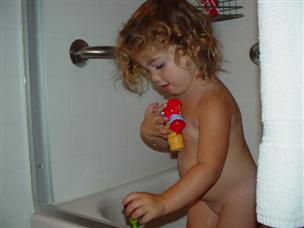 | Time for a bath with my toys... | ...and my sister. |