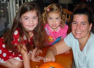 | I still wore my costume (Alex already changed). | Pumpkin carving with Daddy! |