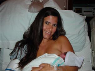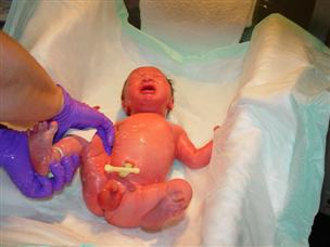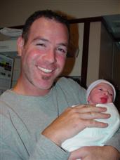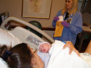 | Successful nursing, moments after birth! | Alex and Charlie came to visit an hour or two later. |