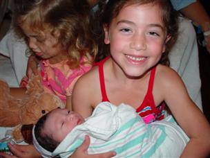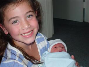 | Alex was thrilled to hold her baby brother. | Nina took our first family photo! |